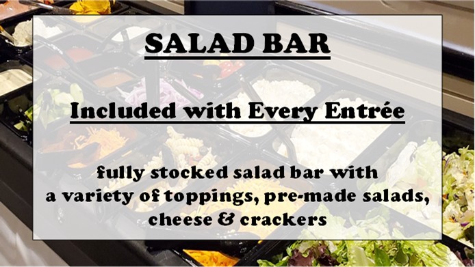 Wednesday: Italian Night (3 Course Meal-Salad Bar, Entree and Dessert) $20